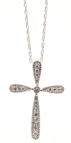 14K White Gold Diamond Cross Pendent Necklace |