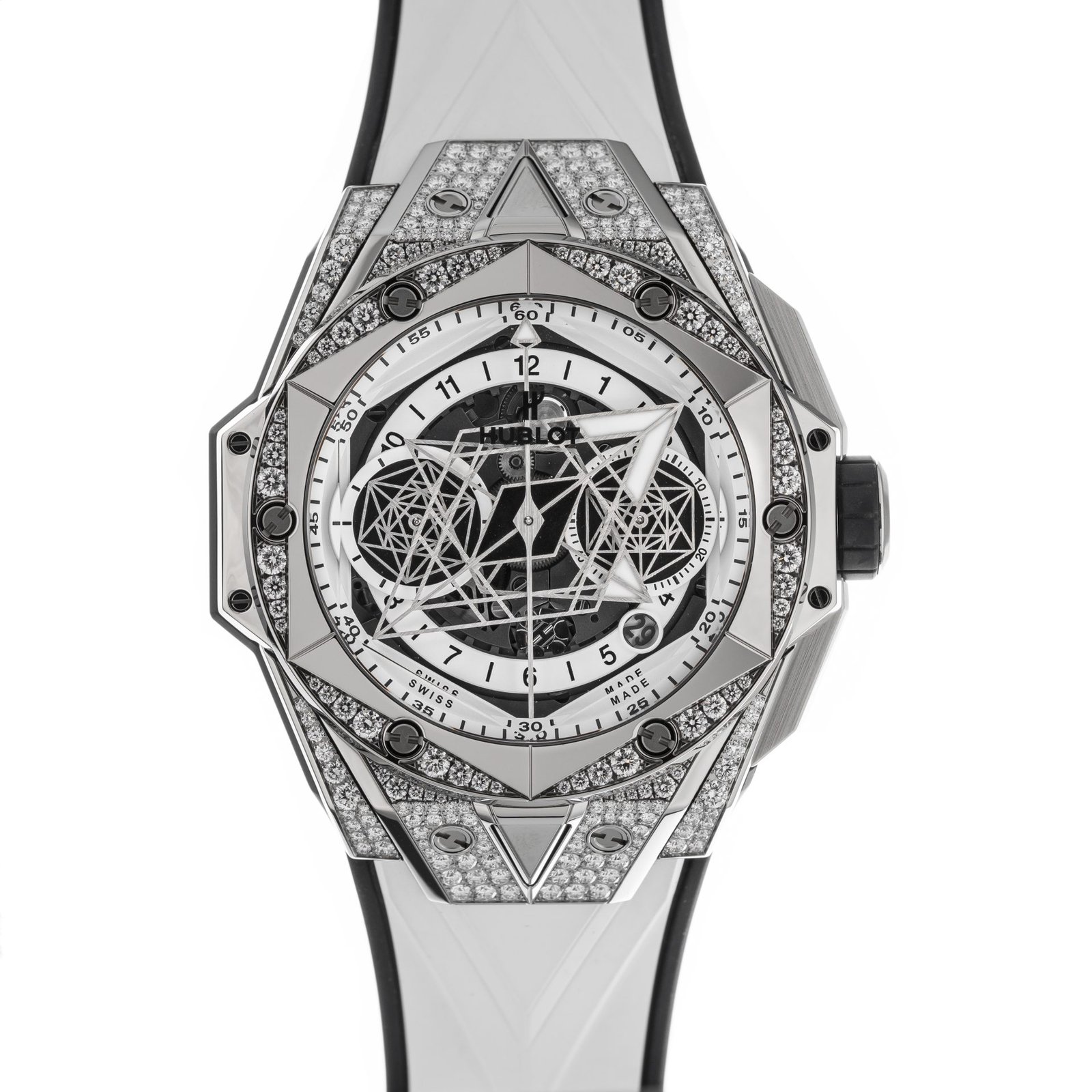 Polished Titanium with Hexagonal Decor Designed by Maxime Buchi Set with 48 Diamonds with 6 H-shaped Titanium Screws