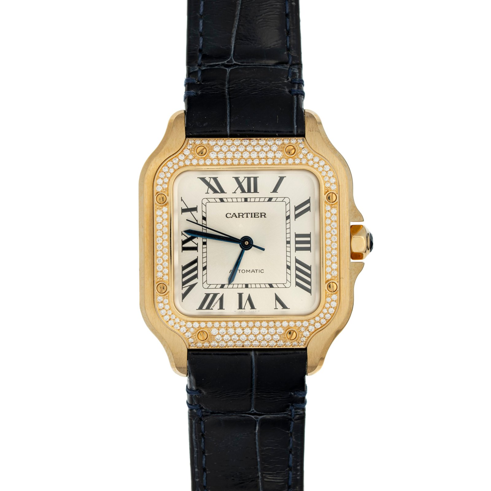 18K yellow gold 35.1 x 35.1 mm. Protected octagonal crown set with the blue faceted sapphire.