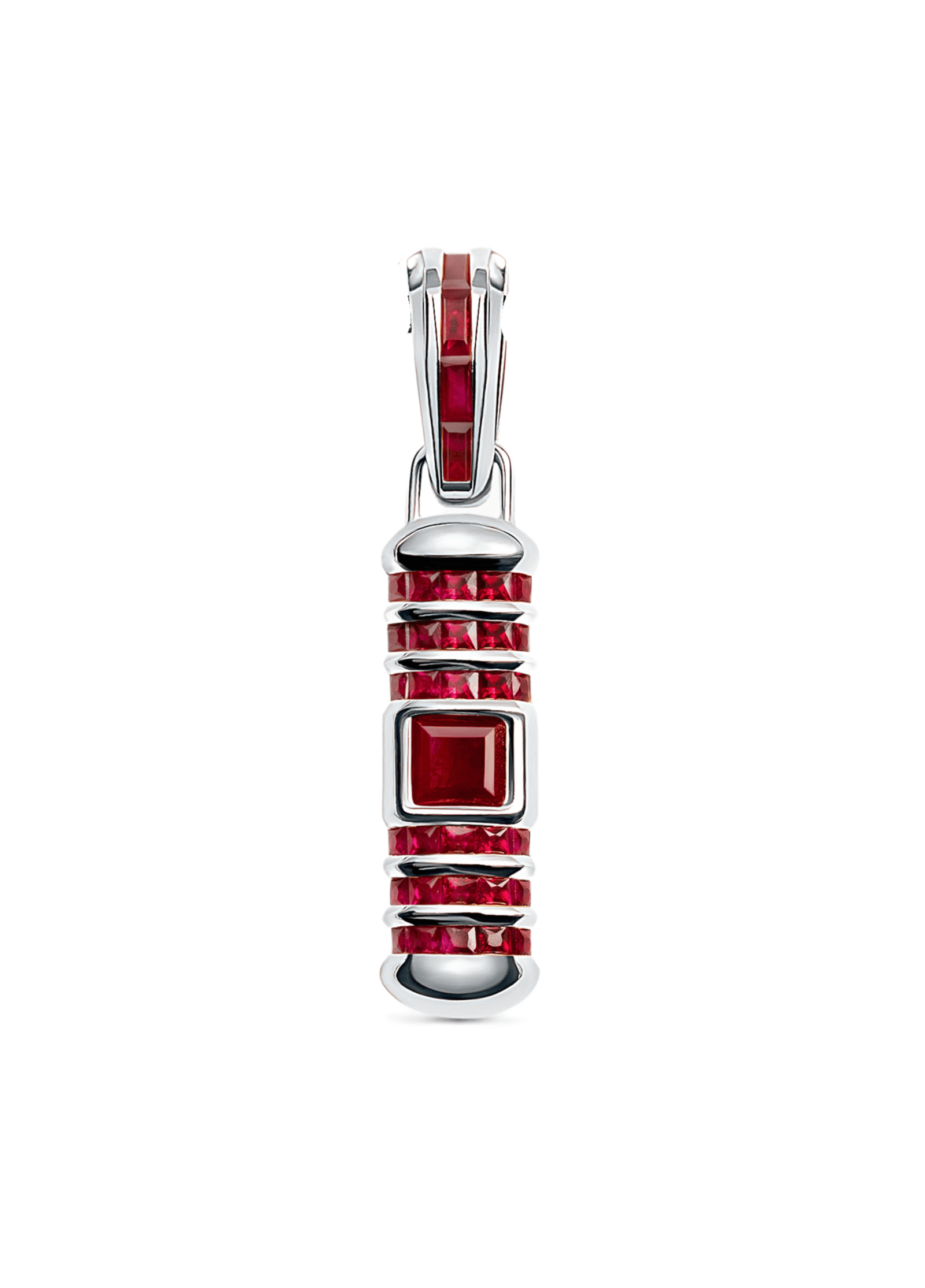 The Crimson Dose Pendant is a breathtaking piece crafted from 11.4 grams of radiant white gold, featuring rubies that total 8.24 carats. Style it with the Crimson Dose Necklace.
