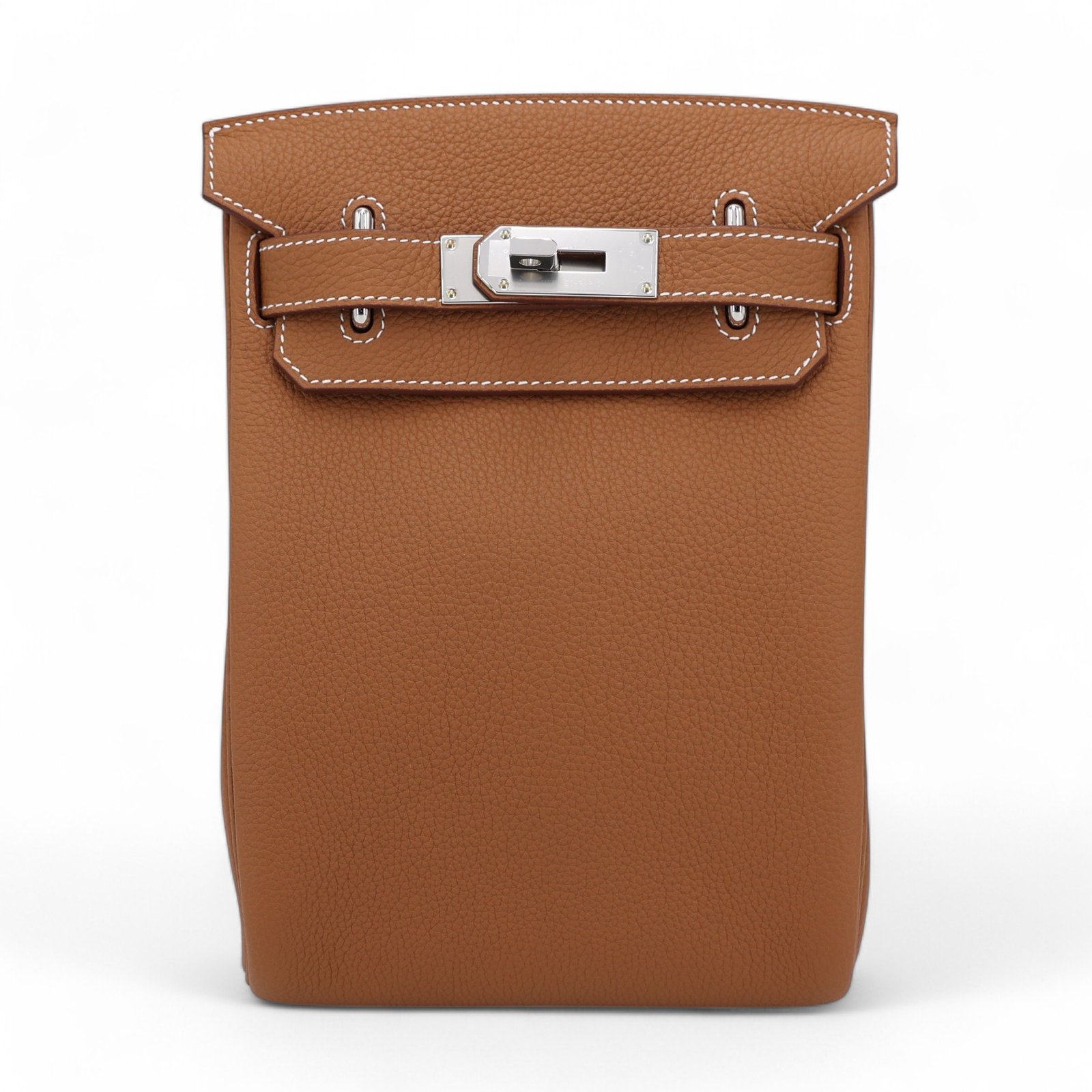 Crafted in luxurious Barenia or Togo calfskin, the HAC à Dos PM by Hermès delivers refined functionality with unmistakable heritage. Its sleek backpack silhouette features a secure turn-clasp closure, adjustable shoulder strap for versatile wear (backpack or cross-body), and subtle palladium-plated hardware that adds modern luster to the gold tone leather. Inside you’ll find a generous main compartment, an interior back pocket and a D-ring for organization. Designed with the roots of the iconic Haut à Courroies line, this piece merges classic craftsmanship with day-to-day agility.