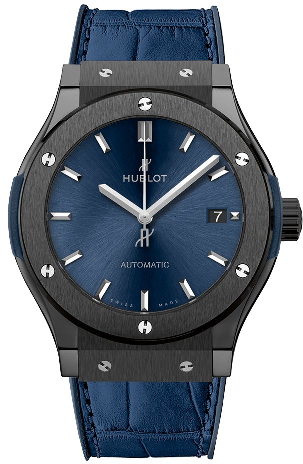 Black ceramic bezel with a brushed finished top & polished finished beveled edges, secured with 6 polished “H” style titanium screws.