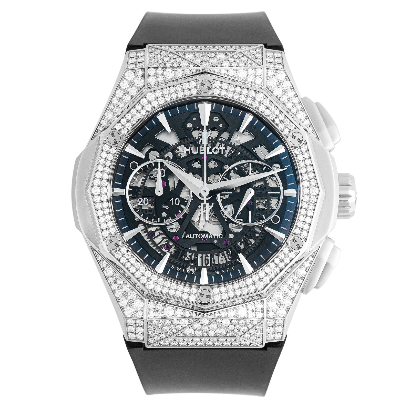 Bezel is set set with 2 rows of diamonds & is secured with 6 ‘H’ style screws. Case & bracelet set with a total of 404 brilliant cut diamonds