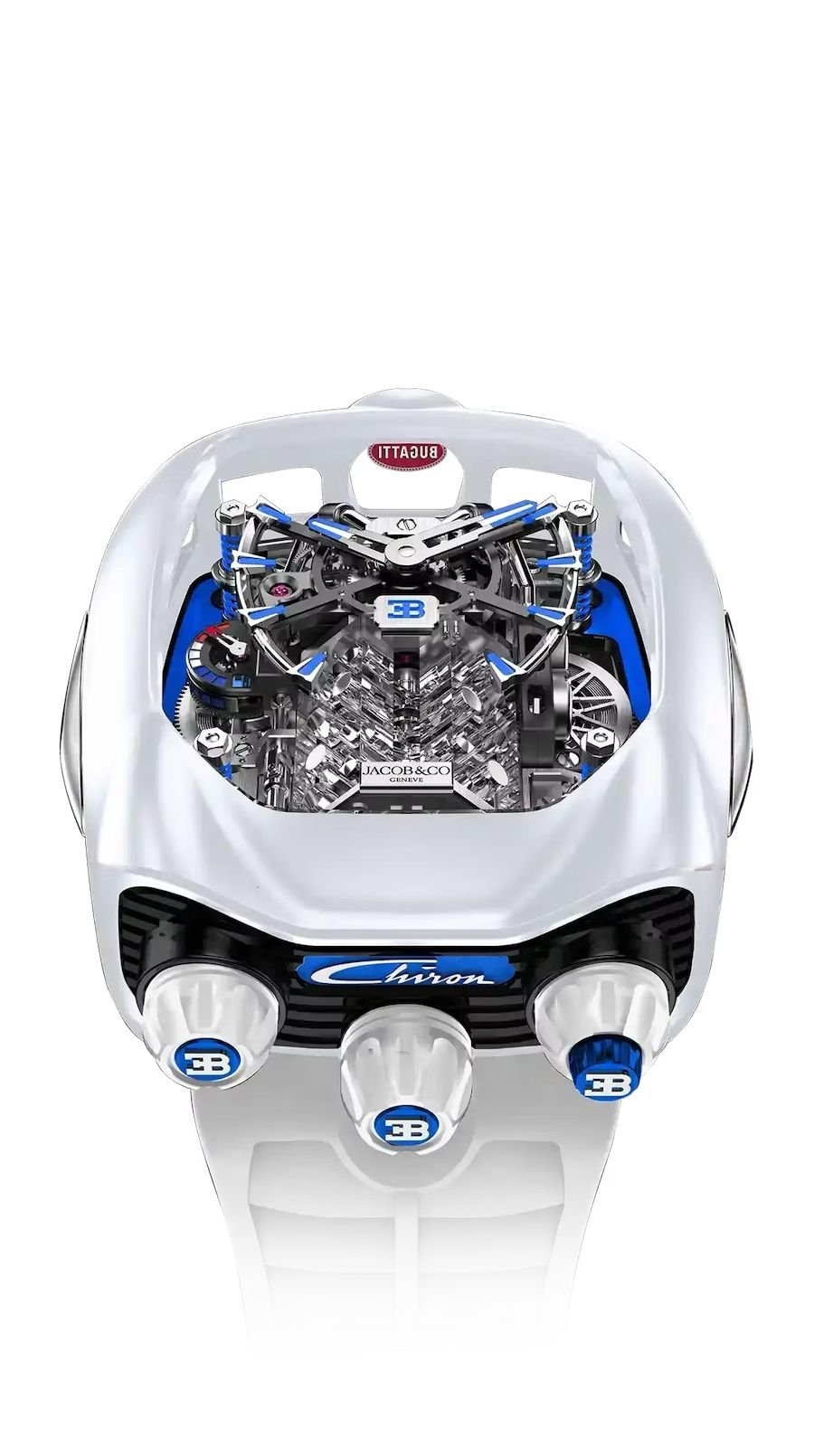 Housed in a sculptural white ceramic case, the watch offers exceptional scratch resistance while maintaining a strikingly modern and lightweight presence on the wrist. The skeletonised movement is built around Jacob & Co.’s signature engine block automaton, a miniature mechanical V16 animation that comes to life at the push of a button, mimicking the pistons of the Bugatti Chiron engine.
