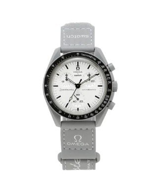 Celebrate space exploration with the Swatch x Omega Bioceramic Moonswatch 1965, a tribute to the legendary year of the first spacewalk. This timepiece features a sleek black and grey Bioceramic case inspired by the vastness of the cosmos.
