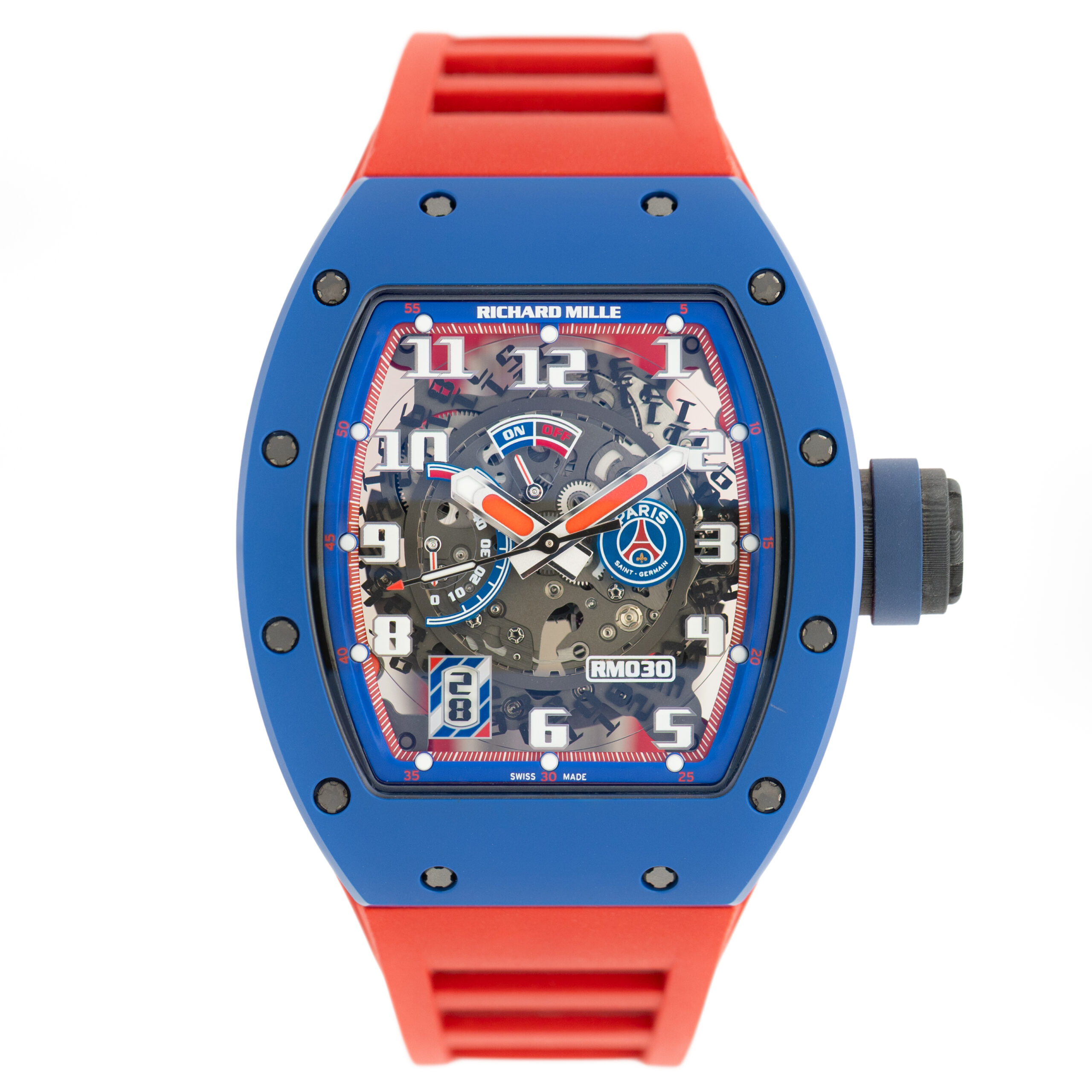 The Richard Mille RM 030 Paris Saint-Germain is a bold fusion of haute horlogerie and elite football culture, created in collaboration with one of the world’s most iconic clubs. Produced in a strictly limited edition, this reference celebrates PSG’s modern identity through advanced materials, cutting-edge mechanics, and unmistakable club colours.