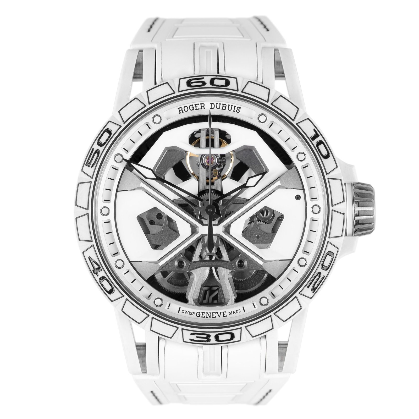Roger Dubuis has once again teamed up with Lamborghini Squadra Corse to design the new ‘Excalibur Huracán’; combining the former’s horological expertise with the latter’s Italian engineering. Limited to just 88 pieces, it’s powered by an automatic RD630 calibre and has a frosted ceramic case with an exhibition back revealing the 360° oscillating rim weight that reproduces the like-for-like speed effect of its namesake’s wheel rims. The crown takes cues from the car’s racing buts and Super-LumiNova® has been used to coat the hands in addition to the timepiece’s tilted