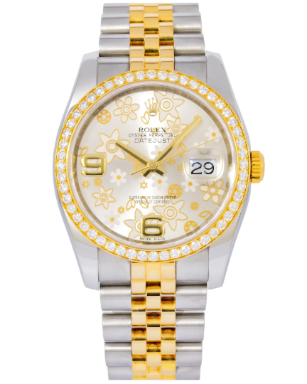 Rolex produced several limited or rare Datejusts with floral-patterned dials, featuring embossed flowers and intricate textures.