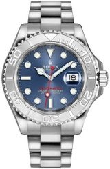 Stainless steel (40mm) w/ platinum bidirectional rotatable time-lapse bezel, inner reflector ring engraved w/ serial number and scratch resistant sapphire crystal